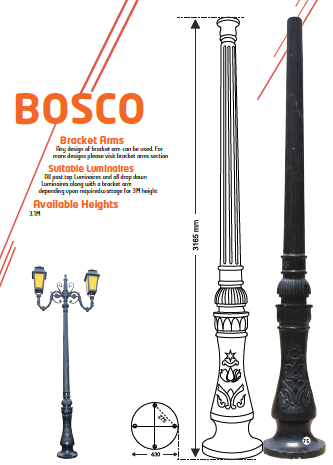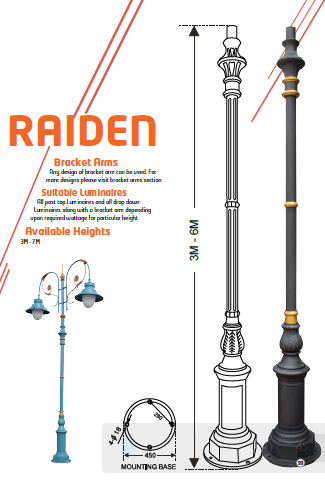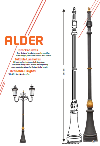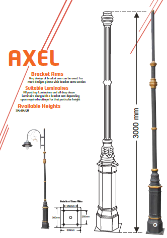 Manufactured from ERW / welded tubes swaged and joined together. Special poles can be manufactured as per customer drawings.For designer & architectural type street & landscape lighting.
